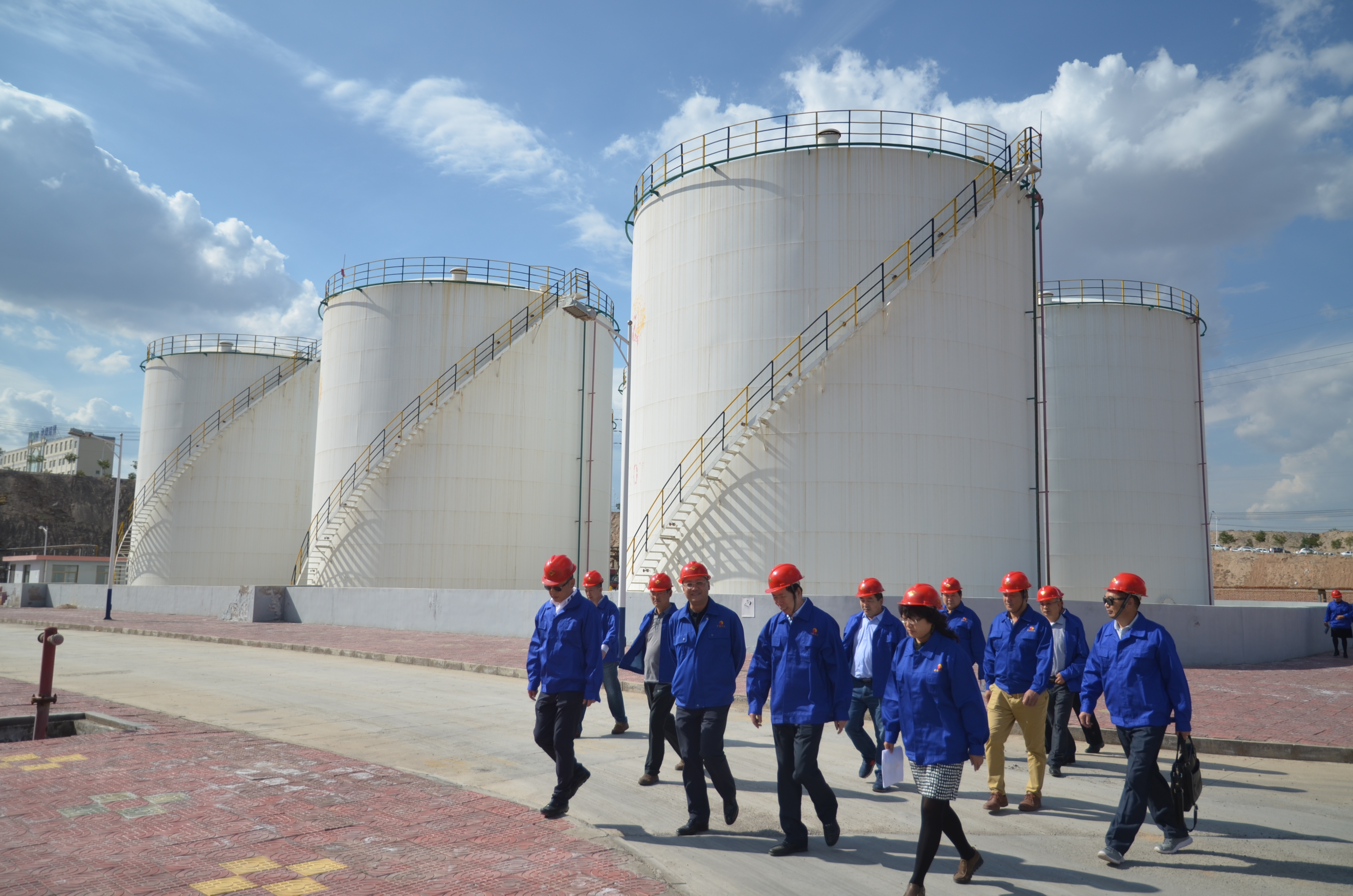 民進(jìn)山東、福建企業(yè)家一行又先后參觀了中鑫石化廠區(qū)辦公區(qū)、罐區(qū)、油品輸出站臺(tái)及鐵路專運(yùn)線。