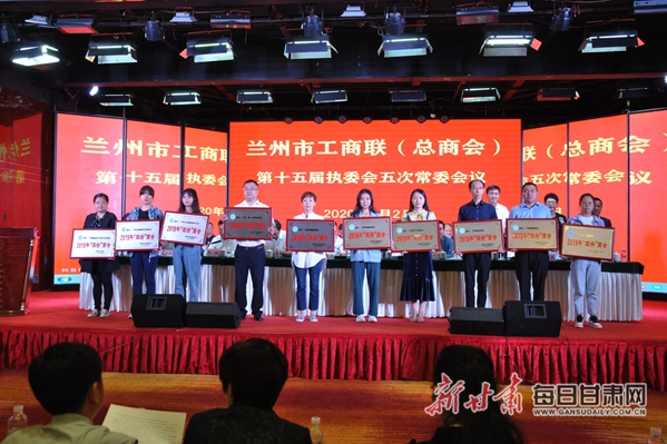 ▲ 為榮獲2019年蘭州市工商聯(lián)(總商會)“四好”商會稱號的商會頒獎