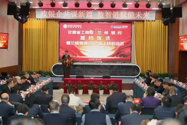 1月16日下午,甘肅省工商聯(lián)與蘭州銀行簽約儀式暨蘭銀鏈信2.0產(chǎn)品上線啟動(dòng)儀式在蘭州舉行。省工商聯(lián)主席、省總商會(huì)會(huì)長郭奇志,省委統(tǒng)戰(zhàn)部副部長,省工商聯(lián)黨組書記、常務(wù)副主席劉全平,省發(fā)改委二級(jí)巡視員孫瑞民,蘭州銀行黨委書記、董事長許建平出席會(huì)議。省工商聯(lián)黨組成員、秘書長宋學(xué)勤主持。省工商聯(lián)副主席、省總商會(huì)副會(huì)長,部分省級(jí)商會(huì)、民營企業(yè)代表,部分市州工商聯(lián)負(fù)責(zé)人共100余人參加會(huì)議。
